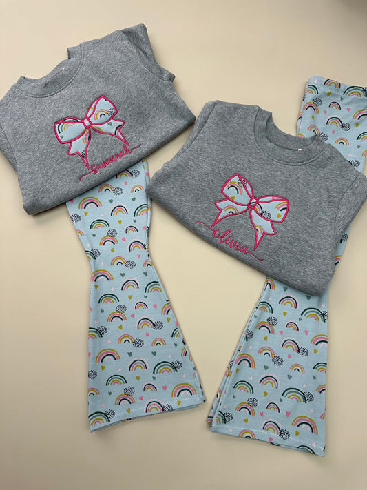 Childrens Personalised Bow sweatshirt & matching flares - Choose your fabric