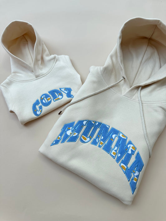 Custom Keepsake ADULT & MINI Matching Appliqué Hoodies in Curved Font